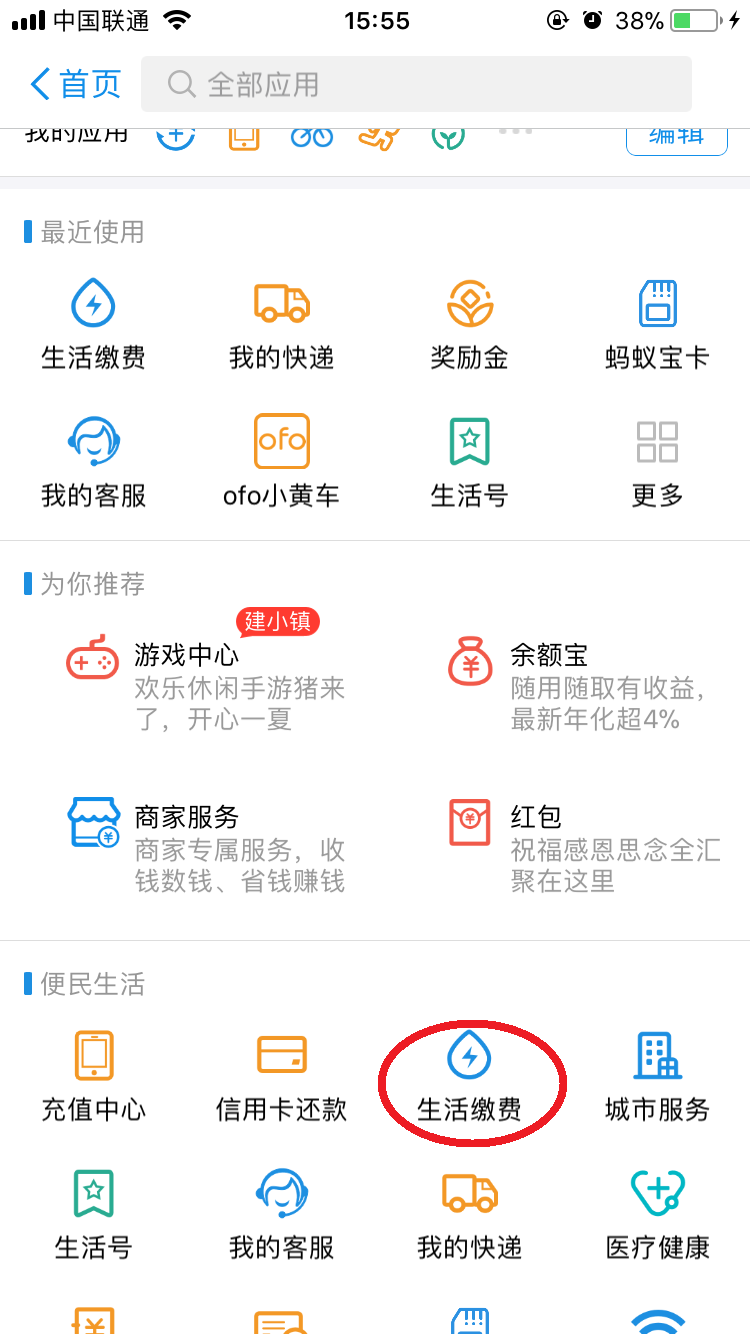 1、打開手機(jī)支付寶,點(diǎn)擊更多,找到 便民生活->生活繳費(fèi),或者搜索生活繳費(fèi)